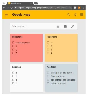 Existem softwares gratuitos, que funcionam no seu micro, tablet ou celular e que permitem que você controle sua lista MoSCoW. Um dos mais legais é o Google Keep. Veja um exemplo de como organizar ele para priorizar.