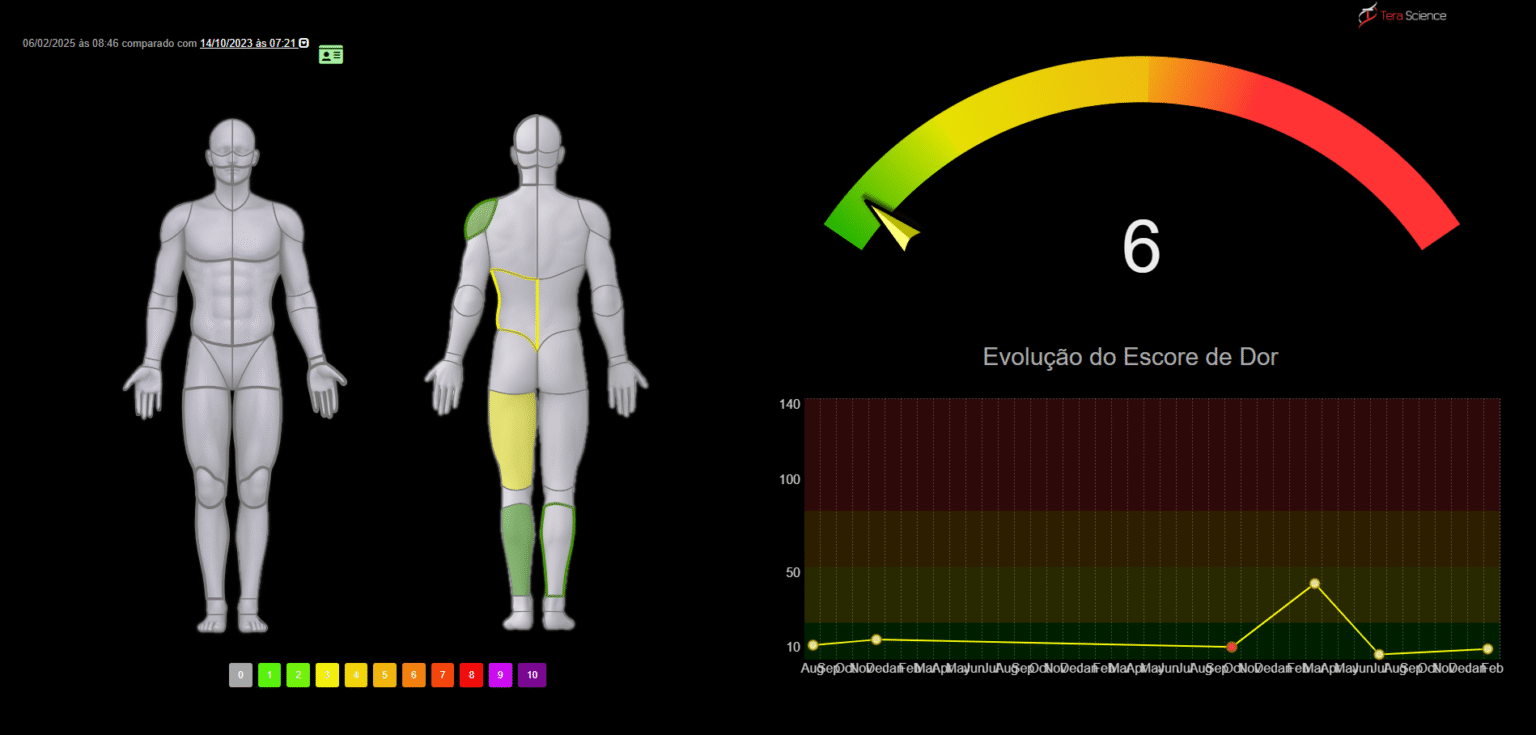O Mapeamento da Dor é um recurso exclusivo integrado à bioimpedância que permite quantificar, avaliar e acompanhar a dor de forma clara e visual.