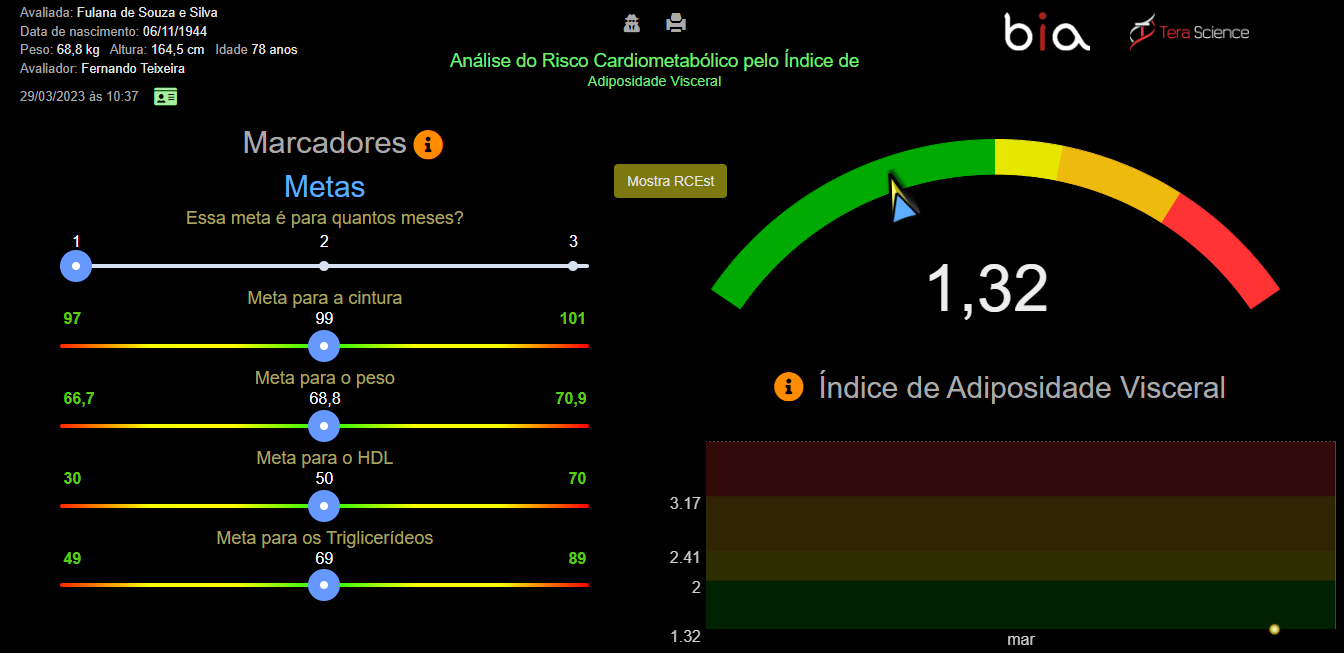 Análise do Risco Cardiometabólico pelo Índice de adiposidade visceral. São necessários valores de HDL e triglicérides, obtidos através de um lipidograma, e medida da circunferência abdominal para o cálculo.